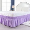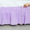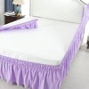 A: The bed skirt cannot be connected to the bedspread, it is only fixed to the edge of the bed with rubber bands and cannot be spliced together.