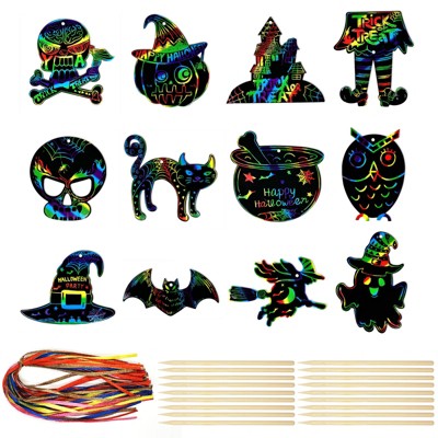 Wrapables 36pc DIY Rainbow Color Scratch Arts Ornaments