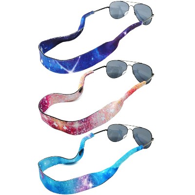 - Never lose expensive sunglasses again. Use these eyewear straps to comfortably hang your eyewear from you neck. The straps are adjustable and fit all types of eyewear, sunglasses, and regular glasses alike.