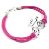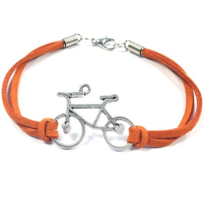 Add some originality to your outfit with this unique bracelet. The bracelet features a spunky bicycle charm connected with leather cords. This bracelet can be stacked with other bracelets to show your personality or worn alone. Dimensions: 7.5" Length. Material: Metal, Leather Cord.