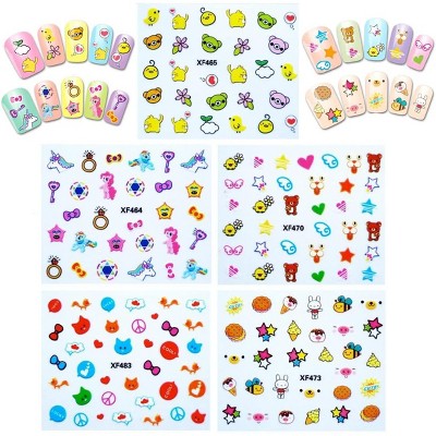 - INCLUDES: 10 sheets Funky Patterns Nail Art Nail Stickers (2 of each design); 300+ nail stickers