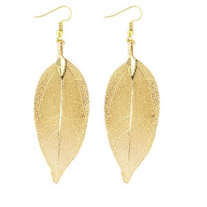 Earrings consist of real natural leaves preselected and electroplated in gold.