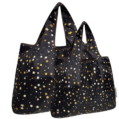 Wrapables Large & Small Foldable Nylon Reusable Shopping Grocery Bags Set of 2, Golden Birds