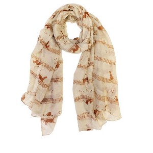 Wrapables Lightweight Cats and Musical Notes Long Scarf, Beige