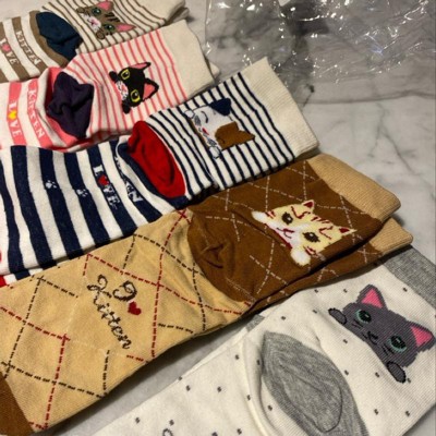Wrapables Novelty Animal Print Crew Socks (Set of 5), Cutie Cat
