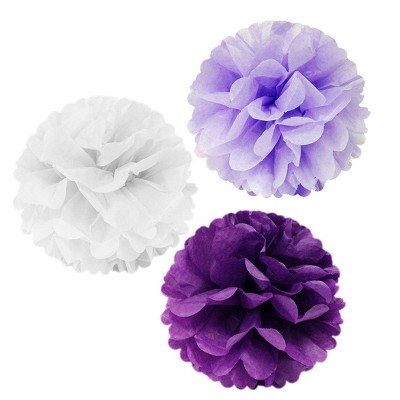 Set includes: Pom Poms: 2 x 8 inch, 2 x 10 inch, 2 x 12 inch for each color. One set includes 3 different colors.