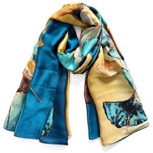Wrapables Silk Like Satin Polyester Large Scarf Wrap, Gingko Blue & Gold