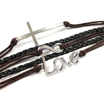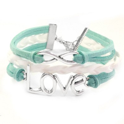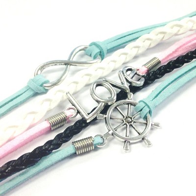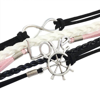 These infinity bracelets are the latest trend! The bracelets consist of several colorful layers of rope and leather and an assortment of charms to match your style. Available in a variety of colors and charms. Dimensions: 6.5 inch Length with 1.25 inch extension chain. Material: Leather, Rope Cord, Zinc Alloy.