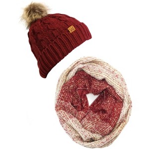 Wrapables Warm Fall and Winter Infinity Scarf, Set-Pom Pom Red