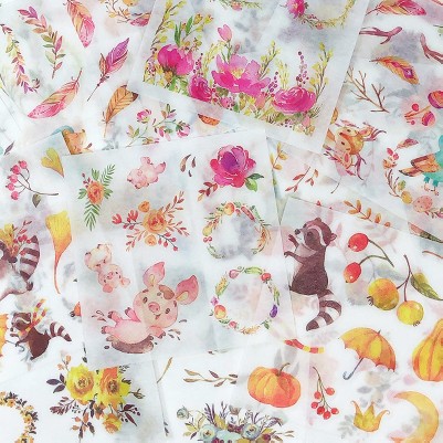 Our washi scrapbooking stickers box sets come in unique designs you will love decorating with. Each set has its own color scheme and comes with 20 sheets of designs in different size and shapes. Choose from a variety of motifs such as floral, nature, animals, and more, to express your personality with these stickers. Use these washi stickers for any type of arts and crafts project you like, they can also be used to decorate your journals and diaries, planners, scrapbooks and photo albums, stationery such as letters and cards, calendars, and cell-phones. Use them as a part of your gift wrapping to personalize your gifts. They can also be used as decals on just about anything. Made with high quality washi paper.