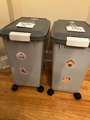 A great variety of breeds even the mutts! I planned to use to cover sticker from the plastic food vendor. They were just a lot smaller than I expected so I had to continue with a paper sign I typed and added the stickers around it. Need an - this is actual size of decals - within the description. If it weren't for the size of my need, I would have given it a 5. It is a little pricey, but quality is great! Accidently stuck on the wrong bin and it was easily removed without tearing.
