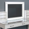 Classic lines and modern design are showcased together in this transitional vanity set featuring table, mirror, and seat. Fashioned in a chic luminous white finish, the set features a large rectangular mirror with LED lighting, a tabletop with 8mm tempered glass, and three drawers with tabletop shelf space for all the storage that's needed. The set is completed with a two-tone padded stool, making it ideal for any bedroom or guest room.