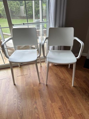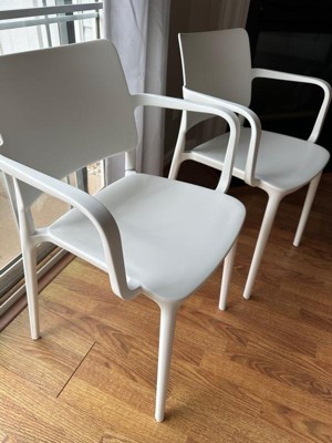 [This review was collected as part of a promotion.] Great for indoors if you need extra seating for a special occasion but I really like these for outdoor seating! They have decent weight to them, they aren’t too heavy but won’t blow over. They’re comfortable to sit in, they look sleek and are very modern to fit any contemporary style. I like that they are easy to wipe clean and stackable for ease of storage!