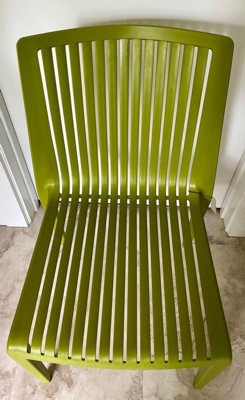 [This review was collected as part of a promotion.] These chairs look awesome on my patio. I love the color and design. It has such a neat look. Their very sturdy and comfortable. They are stackable for easy clean up.