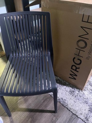 [This review was collected as part of a promotion.] I received 2 WRGHOME Ravenna Modern Outdoor/Indoor plastic resin stacking patio chairs from Influenster for testing and review purposes. These chairs are beautiful, strong, stylish, and I'm sure they will last for years. They make my sitting area look so nice. The make and design leave no chance of rust, mildew, UV damage, or water damage. There's no assembly required, and they are very comfortable to sit in. They are very luxurious patio chairs. I like that they are easy to clean and stack up for storage to save space. I definitely recommend trying these chairs for your home, garden, or patio – they are great for indoor and outdoor use.