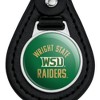 - QUALITY MATERIAL: Our durable round keychain is crafted from leather with a glossy resin-topped emblem featured design shown on one side. Approximately 1.5" (3.8cm) x 2.5" (6.4cm) in overall size, emblem is 1" (2.5cm)..