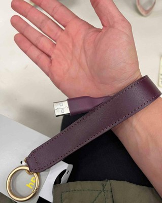 The Wrist Strap with Lightning to USB-A Charging Cable comes in handy for your on-the-go charging or data transferring needs. This electronics accessory features a wrist strap in a solid hue with USB-A connector and a lightning pin connection to keep you connected no matter where you are. It features a gold-finish carabiner ring to attach it to your bag, keys and more. Compatible with a range of devices that require Lightning and USB-A adapters, this on-the-go charging cable makes charging and syncing process efficient whether you're at home, at work or on the go.