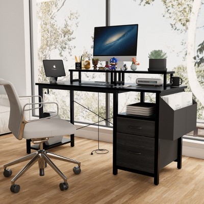 Writing Desk Mid-Century with USB Ports and Drawer for Home Office 47in Wide Black-3irtyhousy