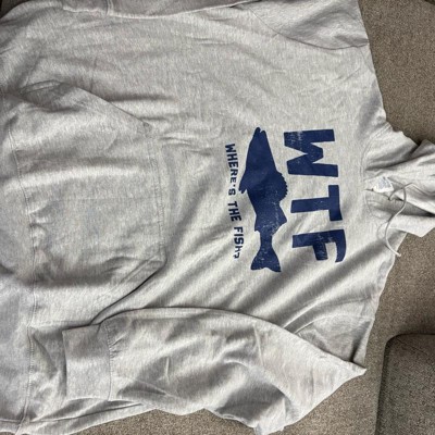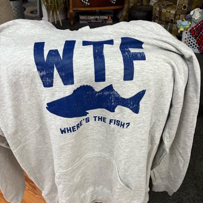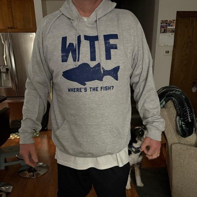 WTF Wheres The Fish Adult Hoodie Funny Fishing Acronym Fishermen Joke Hooded Sweatshirt - Crazy Dog Hoodie For Fishers Light Grey XL