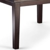 - Square solid wood table is finished with a rich Java Brown stain and a protective NC lacquer
