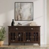 - Features two (2) top drawers with metal glides, and four (4) doors with tempered glass that open to large storage spaces with one (1) shelf each.