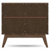 - Mid Century design includes dark brown accent detail and discreet cut out door handle