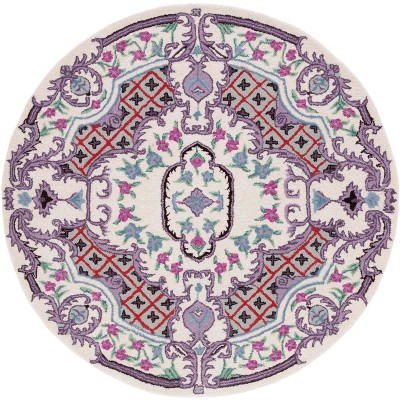 Crafted with care in India, the rug features a charming pattern that combines traditional motifs with a modern color palette. Vivid hues of ivory are complemented by a diverse array of colors, including vibrant reds, calming blues, earthy greens, and subtle browns, all harmoniously blended in an eye-catching multi-colored design.