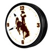 This premium University of Wyoming Retro Lighted Wall Clock clock will be sure to add the finishing touch to any room in your home or office. This piece is injection molded and features a high-resolution, high gloss digitally printed face. Comes with an 8 foot power cord and an on/off pull switch for the light. LED illuminated. Hanging hardware and light bulb included. This is an officially licensed product of Wyoming and made in the USA.