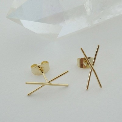 X Bar Studs in Gold, Rose Gold, Silver - Honeycat