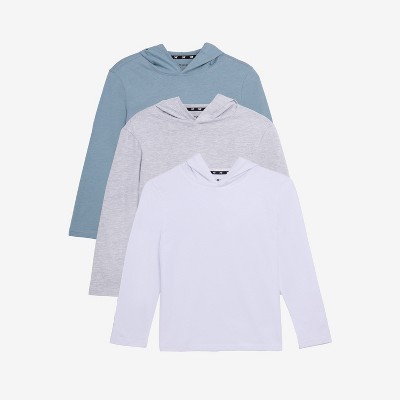 X RAY 3 Pack Kids And Boys 100% Cotton Long Sleeve Crewneck T-Shirts in H CH/LT H GY/WH Size M
