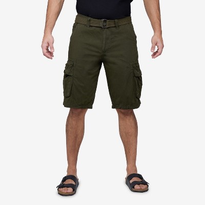 X RAY Men's Belted 12.5" Inseam Knee Length Cargo Shorts plus size shorts in available in OLIVE Size 28