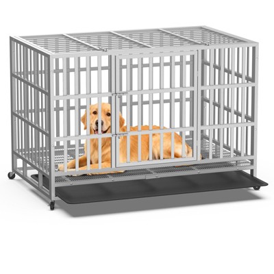 XBRIGH 54/48/42/38 Inch Heavy Duty Indestructible Dog Crate Steel Escape Proof, High Anxiety Cage with Wheels, Removable Tray, Extra Large Dog Kennel