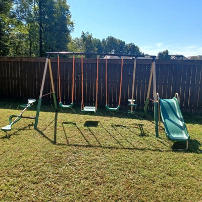 [This review was collected as part of a promotion.] I recently got this XDP Recreation - XDP Recreation Crestview Outdoor Swing Set w/ Slide, Glider, 3 Swings, & See Saw and my grandkids absolutely love it. everybody can play on it at the same time and nobody gets left out. it was easy to assemble and didn't take very long to assemble