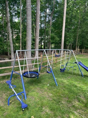 I have 2 item that, I don’t like. The first is the seesaw the pegs under the seat have a chance of crushing little feet. The second is the way the metal frame bends,when only 2 small kids are swing. Total weight 100 pounds. I would not buy again.