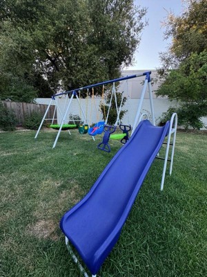 XDP Recreation Outdoor All Star Playground Backyard Kids Play/Swing Set, Space Rider, Super Disc Swing, Slide, 7 Children, Ages 3 to 8