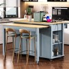 - With two drawers on top and four open compartments on the sides, this kitchen island offers ample space for organizing kitchen items. The island doors reveal three adjustable shelves, allowing for customizable interior storage based on needs.