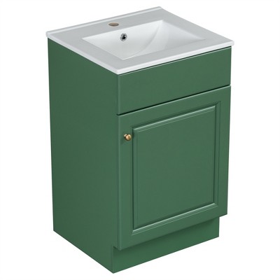 This elegant bathroom vanity combines solid pine wood construction with premium MDF panels for exceptional durability and stability. The smooth painted finish resists moisture and simplifies cleaning, while the sturdy pine legs provide reliable support. The integrated ceramic sink features a stain-resistant surface that maintains its pristine appearance with minimal maintenance.