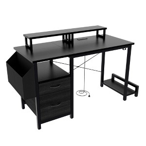 - Two foldable fabric drawers and an oversized side pTwo foldable fabric drawers and an oversized side pocket organize files, books, and accessories. A widened hook holds bags or headphones, maximizing space. The reversible drawer cabinet adapts to left/right placement, offering customizable storage. Keep essentials within reach while maintaining a clean, uncluttered desktop.ocket organize files, books, and accessories. A widened hook holds bags or headphones, maximizing space. The reversible drawer cabinet adapts to left/right placement, offering customizable storage. Keep essentials within reach while maintaining a clean, uncluttered desktop.