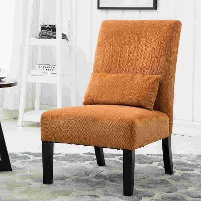 XINGHANZHENXUAN Orange Armless Accent Chair with Matching Pillow, Solid Wood Legs, Modern Seating for Living Room, Bedroom