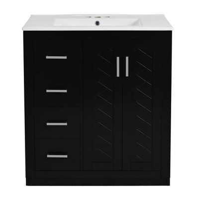 XINGHANZHENXUAN Black Vintage Style Bathroom Vanity with Sink, Soft-Close 2-Door Cabinet with Drawer & Ceramic Basin (Faucet Not Included)