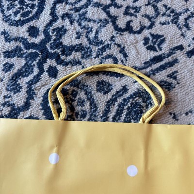 [This review was collected as part of a promotion.] This bag has such a fun design! The yellow with the different size white dots makes it slightly unique and whimsical. It’s a great size. I often have the problem of a gift bag that is slightly too small or narrow for the gift. I do wish the handles were slightly wider and more sturdy, and there is no tag on the bag. Not dealbreakers but may be important for some. This could be used for birthdays, Mother’s Day, baby showers, and more! I received an incentive to write this review.