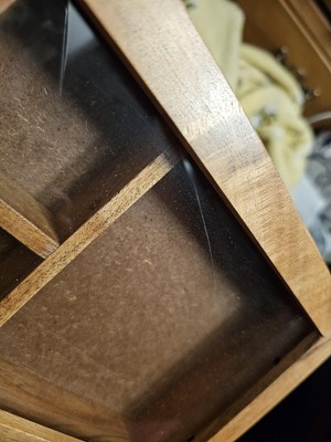 What a complete joke this is. First: it’s crooked! Why would I want to put this up to display my most cherished smalls? Second: The clasp to keep it shut is crooked as well so I can’t thread the metal part through to keep it closed. The quality of this is so sad. There is no way that Joanna Gaines, herself, would display this in her home!