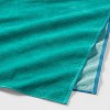 A: The beach towel is made from 100% cotton terry fabric, ensuring softness and comfort.