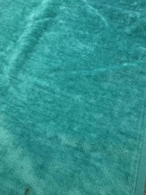 A: Hello Arin - Thank you for your interest on - XL 'WOW' Reversible Beach Towel Green/Blue/Lime. This is made of 100% cotton terry fabric with a heavyweight construction (550–800 GSM), making it highly absorbent and effective for drying off—unlike microfiber towels that may not absorb moisture as well. Hope this helps. - Rose