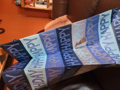 Add a special touch to your birthday presents with this "Happy Birthday" Jumbo Gift Bag from Spritz™. Adorned with an allover "Happy Birthday" text in blue and white hues for charming flair, this jumbo paper gift bag is the perfect size for any large to medium gift, and is great for presenting birthday presents in style. Plus, the soft fabric handles make for easy carrying. Just pop the gift in and dress it up in a nest of matching tissue paper, and get ready to gift.