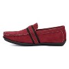 Small yet big in style, the Murphy loafer shoes make a bold statement. Crafted from faux suede, these loafers feature distinctive moc toe stitching and are carefully embellished with a strap and metallic hardware for an extra touch of sophistication. Perfect for adding a touch of elegance to both casual and semi-formal outfits, the Murphy loafers combine refined details with versatile wearability. Elevate your footwear collection with this stylish and eye-catching design.