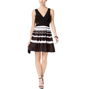 XSCAPE Womens Striped Mini Fit & Flare Dress