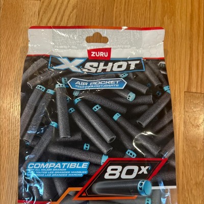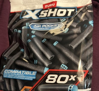 Never lose out on the action with this handy 80 dart refill pack! XSHOT Air Pocket Technology Darts are designed for a further, faster, and more accurate blast. XSHOT darts are compatible with most leading brands and offer the best value with its amazing light foam technology! Comes in a resealable bag for easy storage after the battle is over.