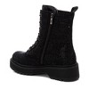 Step into fashion and quality with Xti Boots for women. These stylish boots are the perfect combination of fashion and comfort, making them a must-have in every woman's wardrobe. Whether you're headed to work or a night out with friends, these boots will keep you looking and feeling your best. Take your style to the next level with Xti Shoes! These combat booties are the perfect blend of casual and comfort. Trend design that goes well with every outfit. Upper with decorative rhinestones. Side zipper closure and lace-up for easy fit. Round toe. Lightweight non-slip rubber sole.