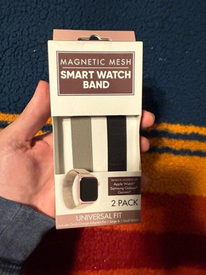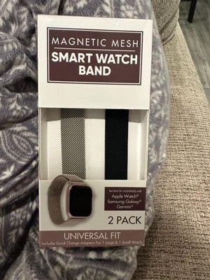 [This review was collected as part of a promotion.] From first glance this looks nice and easy to wear. Upon opening, I quickly realized it was very small and wouldn’t fit my husband. Also, I was very confused as to how to even attach this to his watch and also how to wear it. Wouldn’t recommend for a man just because the mesh pulls on the arm hair and the magnet doesn’t withstand the abuse from working.